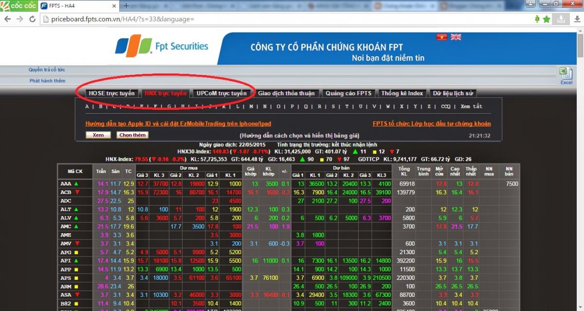 Trong ảnh: Bảng giá của Công ty CP Chứng khoán FPT (FPTS) tại sàn HNX (HNX-FPTS) với dữ liệu truyền về từ Sở Giao dịch Chứng khoán Hà Nội – HNX